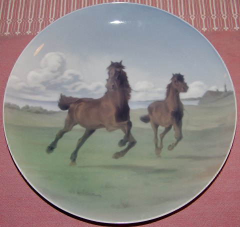Bing & Grøndahl Unika Vægtallerken med Heste af Knud Max Møller. Måler 32,5cm og er i god stand.