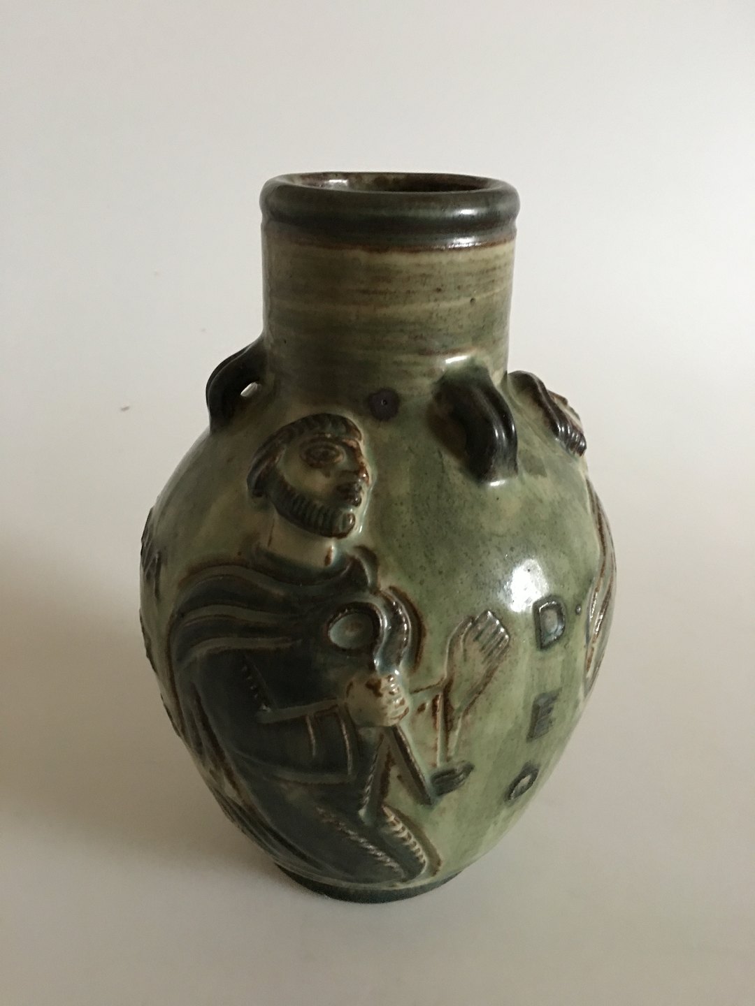 Royal Copenhagen Jais Nielsen Stoneware Vase No 2966. In rare green glaze. Measures 21cm and is in good condition.