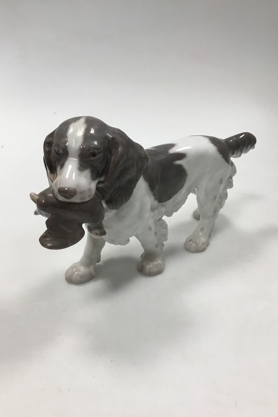 Bing and Grondahl Figurine Spaniel with Bird No. 2061. Measures 25 cm (9 27/32 in) and is in good condition. Designed by Lauritz Jensen.