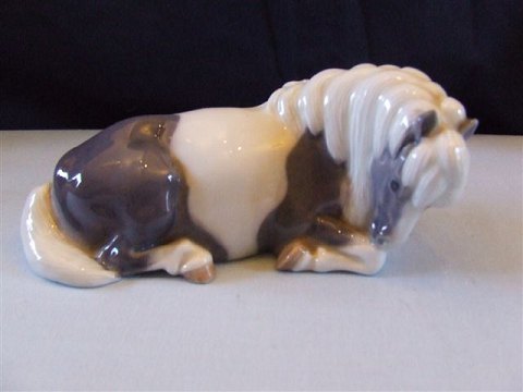 Royal Copenhagen Figur Shetland Pony siddende No 4611. Måler 6cm høj og er i god stand. Designet af Jeanne Grut.