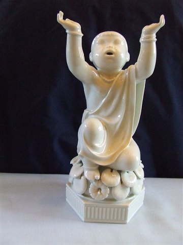 Royal Copenhagen Figur Barn med løftet hænder "Buddha" No 12458. I god stand og designet af Arno Malinowski.