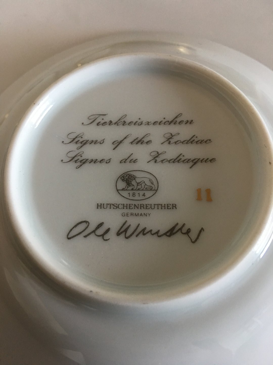 Hutchenreuther Ole Winther Mocca cup, Zodiac Scorpio. Measures 5.5 cm / 2 11/64 in. dia.
