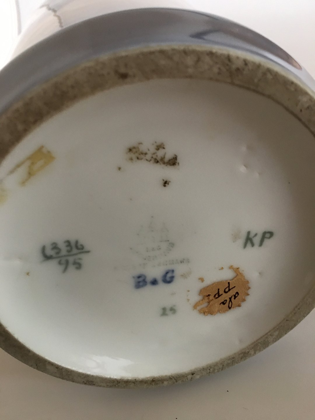 Bing & Grondahl Art nouveau Vase with Peacocks 6336/95. In perfect condition. Measures 26,5cm high and 14cm dia. From 1902-1914. Painter KP.