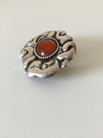 Thorvald Bindesbøll Brooch from Holger Kysters Smithy with Stone. Measures 5.2 cm x 4.3 cm / 2 3/64 in. x 1 11/16 in. Weighs 17.3 g / 0.61 oz. Is in good condition.