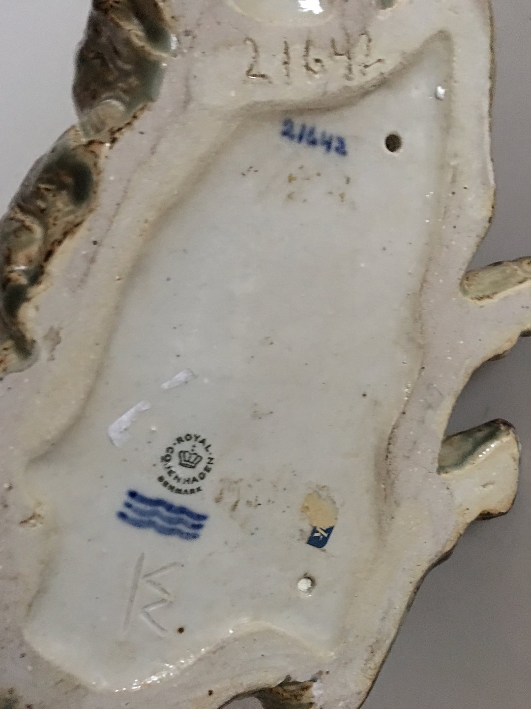Royal Copenhagen Stentøjsfigur af Vædder med kid af Knud Kyhn No 21642. Måler 24cm x 30cm og er i god stand.