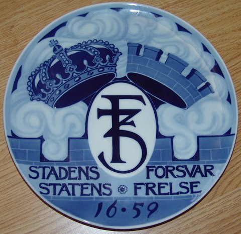 Porsgrund Mindeplatte til Stadens Forsvar i 1659. Måler 23cm og er i perfekt stand.