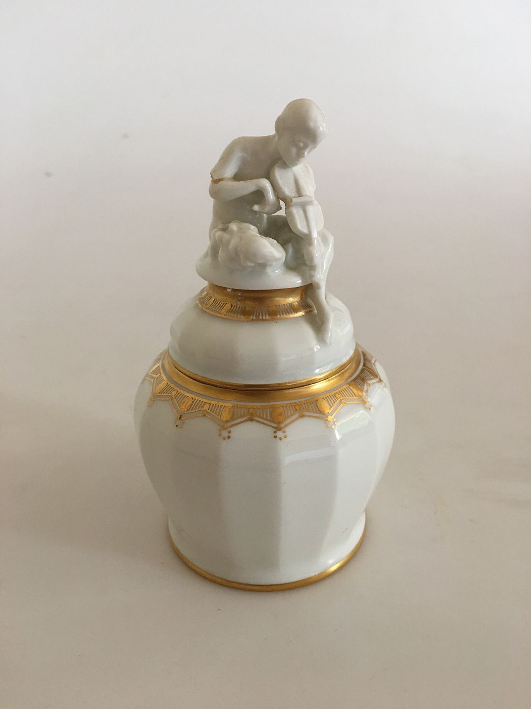 Bing & Grøndahl Hans Tegner låg vase med faun No 3172/1161. Måler 13cm og faunen har en limet hånd.
