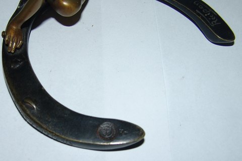Art Nouveau Nude Lady Bronze On Horseshoe Georges Recipon. Measures 15,5cm x 11cm and in good condition.