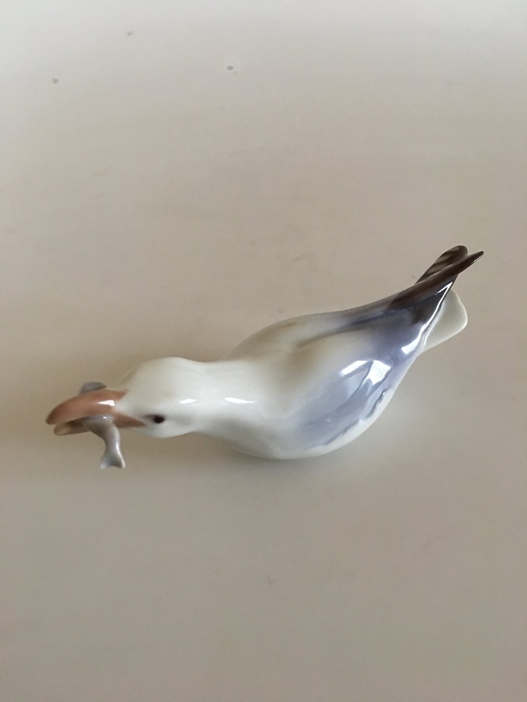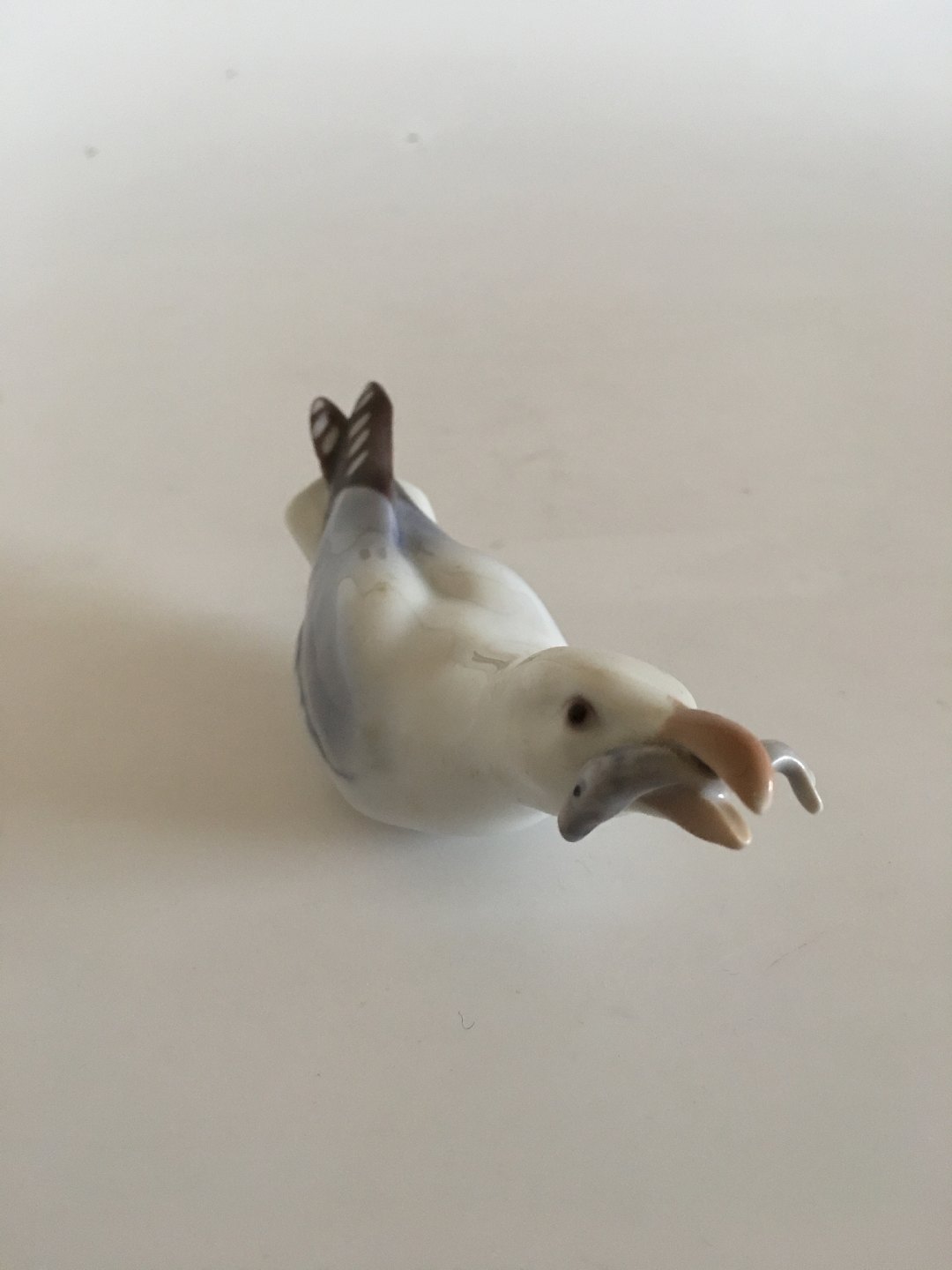 Bing & Grøndahl Figur Måge med fisk No 1808. Måler 5cm x 14cm og er i god stand.