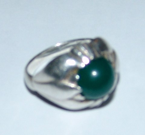 Georg Jensen Sterling Sølv ring med Grøn Sten Vintage No 59. Ring størrelse er: 55. I god brugt stand. Fra 1933-1944.