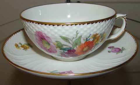 Royal Copenhagen Saksisk Blomst Thekop med underkop No 1551. I perfekt stand.