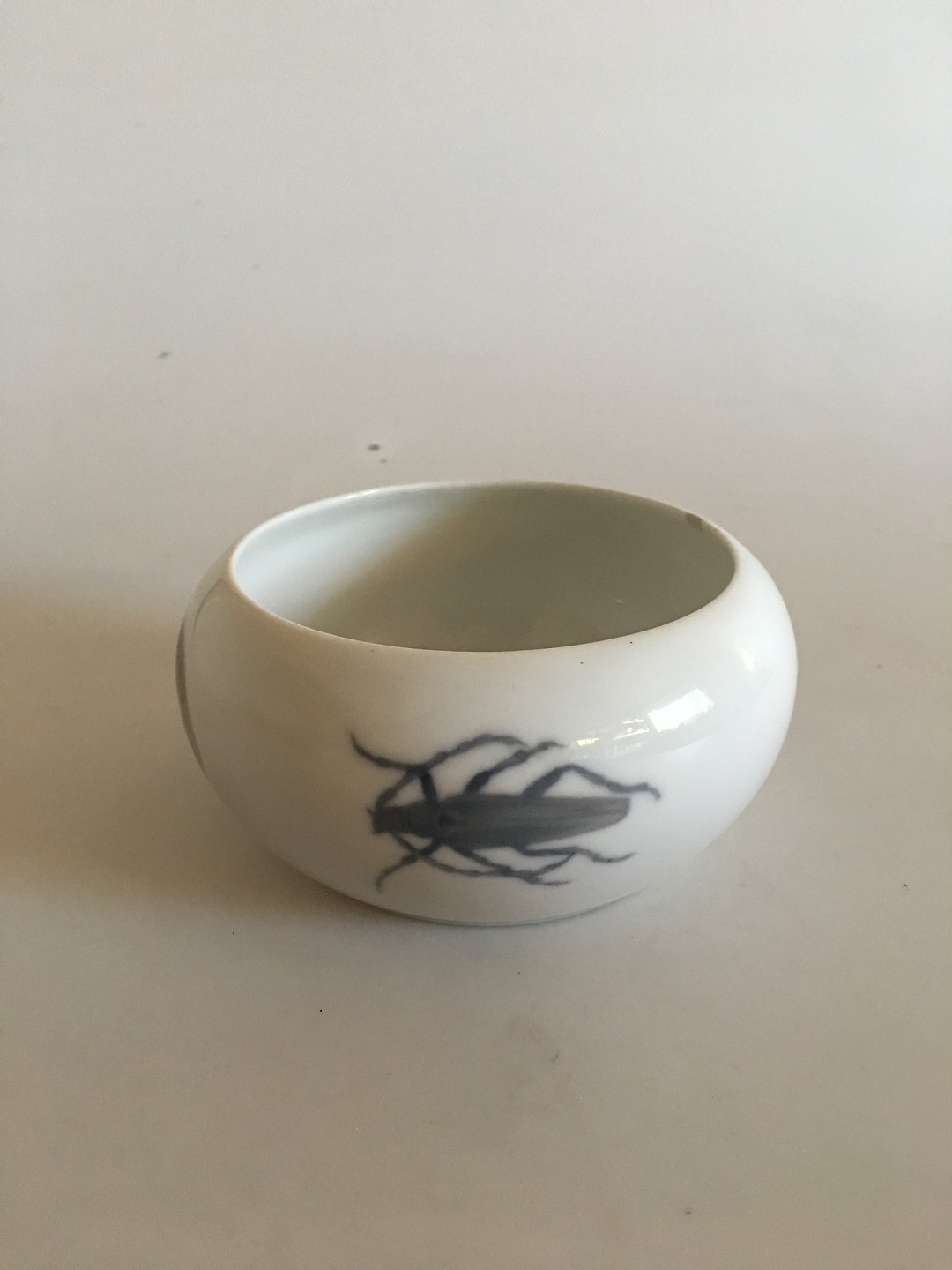 Royal Copenhagen Art Nouveau Bowl with Beatle and Mushrooms No 1069/681. Measures 14cm x 7cm and is in good condition, except for a repair on the rim. See pictures.