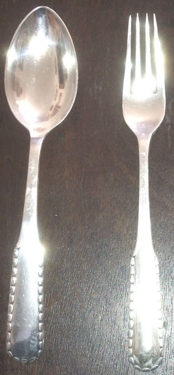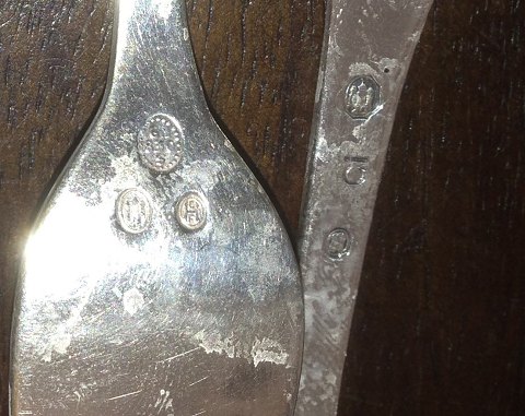 Georg Jensen Sølv Bestik Perle 2 dele. Med meget tidlige stempler. Måler 18cm og 17,4cm. Har brugssligtage. Prisen er for begge.
