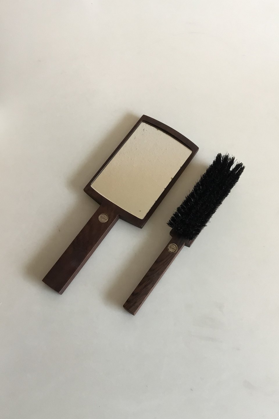 Hans Hansen Palisander med sølvindlæg Spejl og Børste. Måler 26 cm og 22 cm. Spejl med lidt misfarvning i glasset.