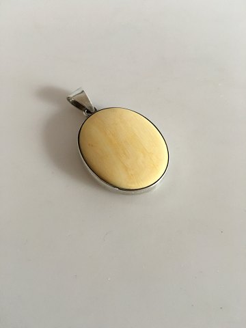 N. E. From Sterling Sølv vedhæng med Elfenben. Måler 3cm, vejer 9,2g og er i god stand.