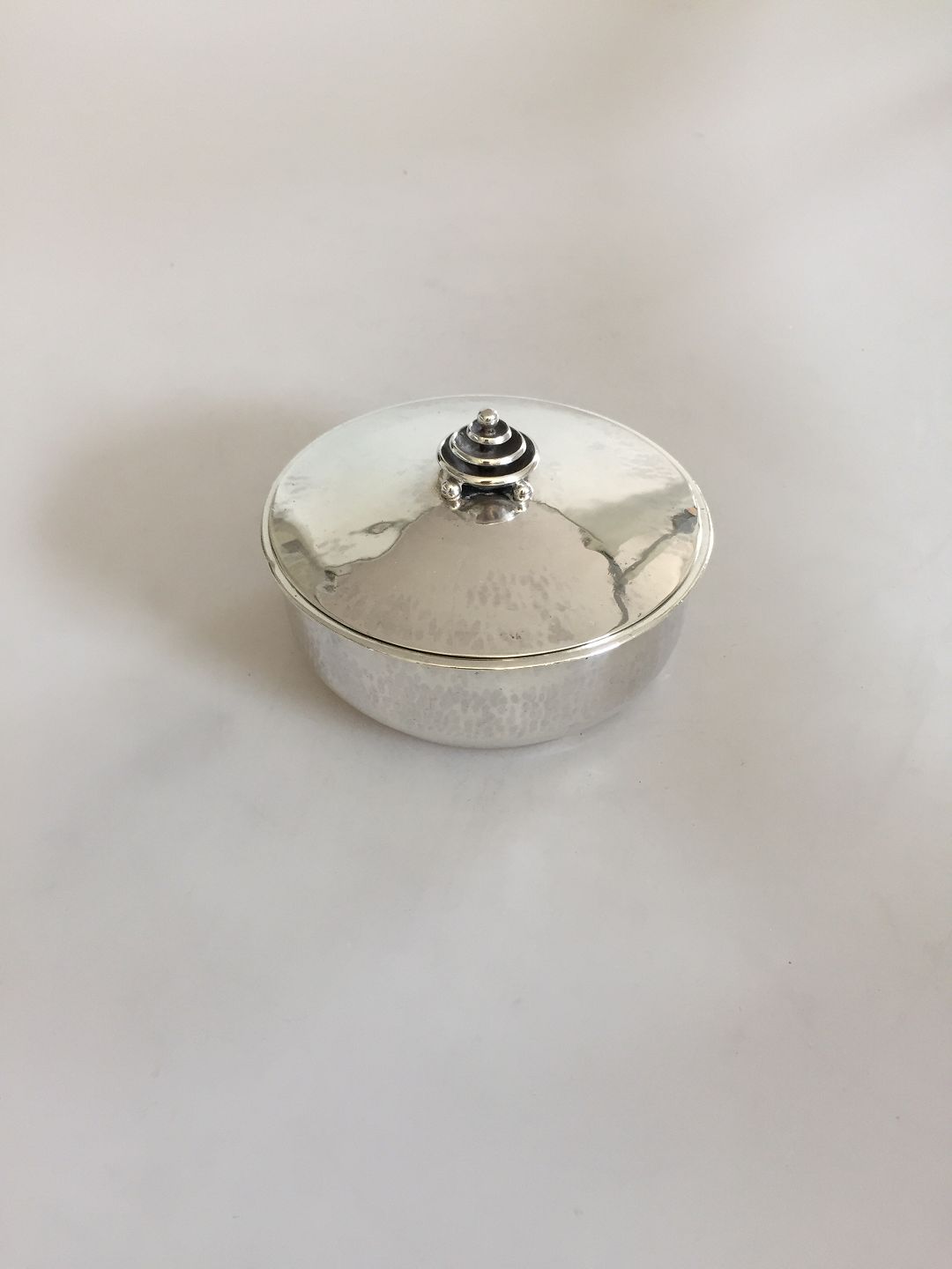Hans Hansen dåse i sterling sølv af Karl Gustav Hansen fra 1933. Måler 10,1cm i dia.
