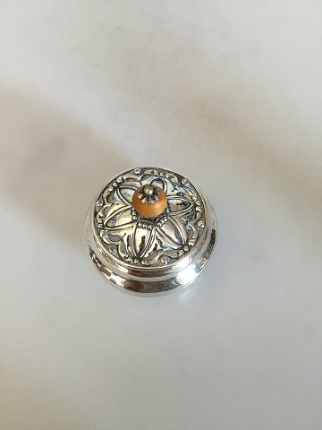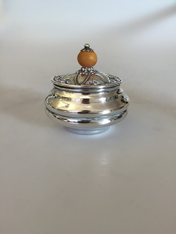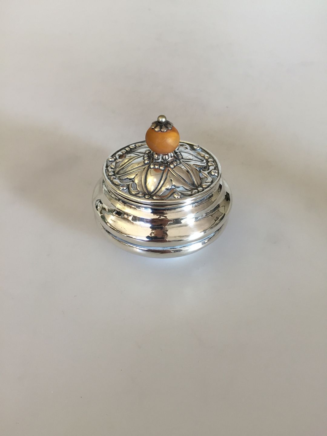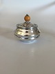 Kay Bojesen Sølv lågdåse med ravknub. Måler 6cm høj og 6,5cm i dia.