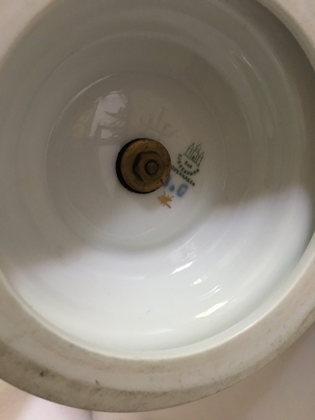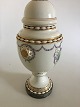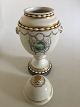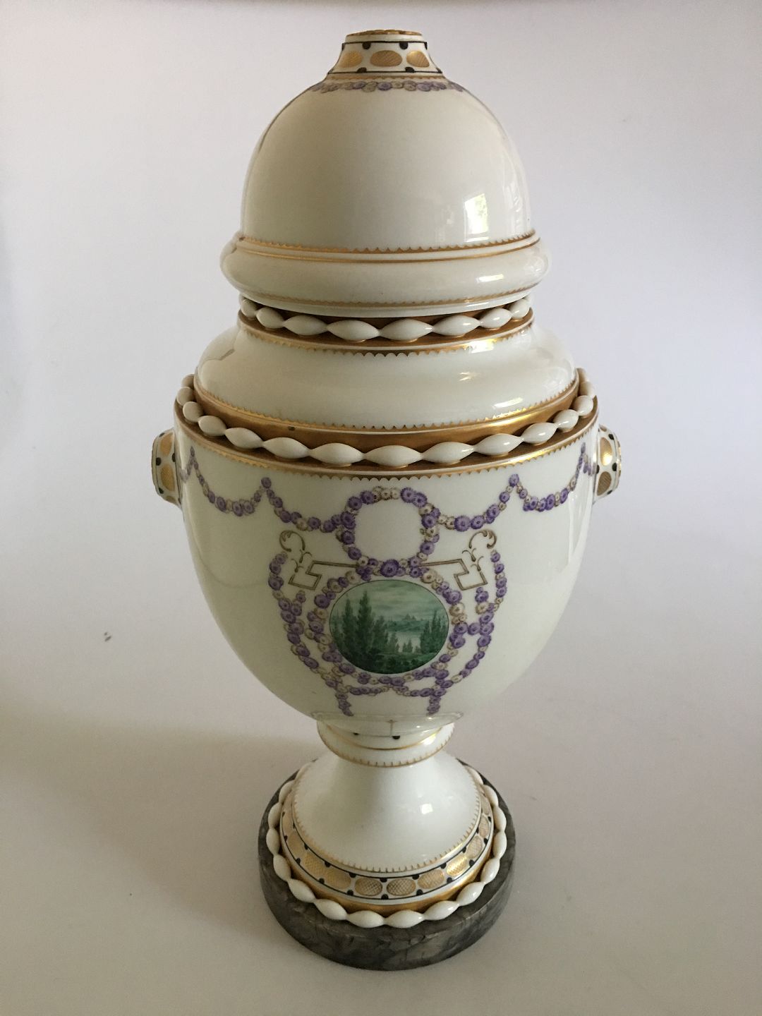 Bing & Grondahl Unique lidded vase by Emma Krogsbøll and Hans Tegner from 1914-1915. Fantastic vase by Hans Tegner. Marked with the marks for 1914-1915. Has two small round pictures, one on each side. The foot of the vase is painted to look like marble. The vae measures 14 1/4" and is in perfect conditon.
