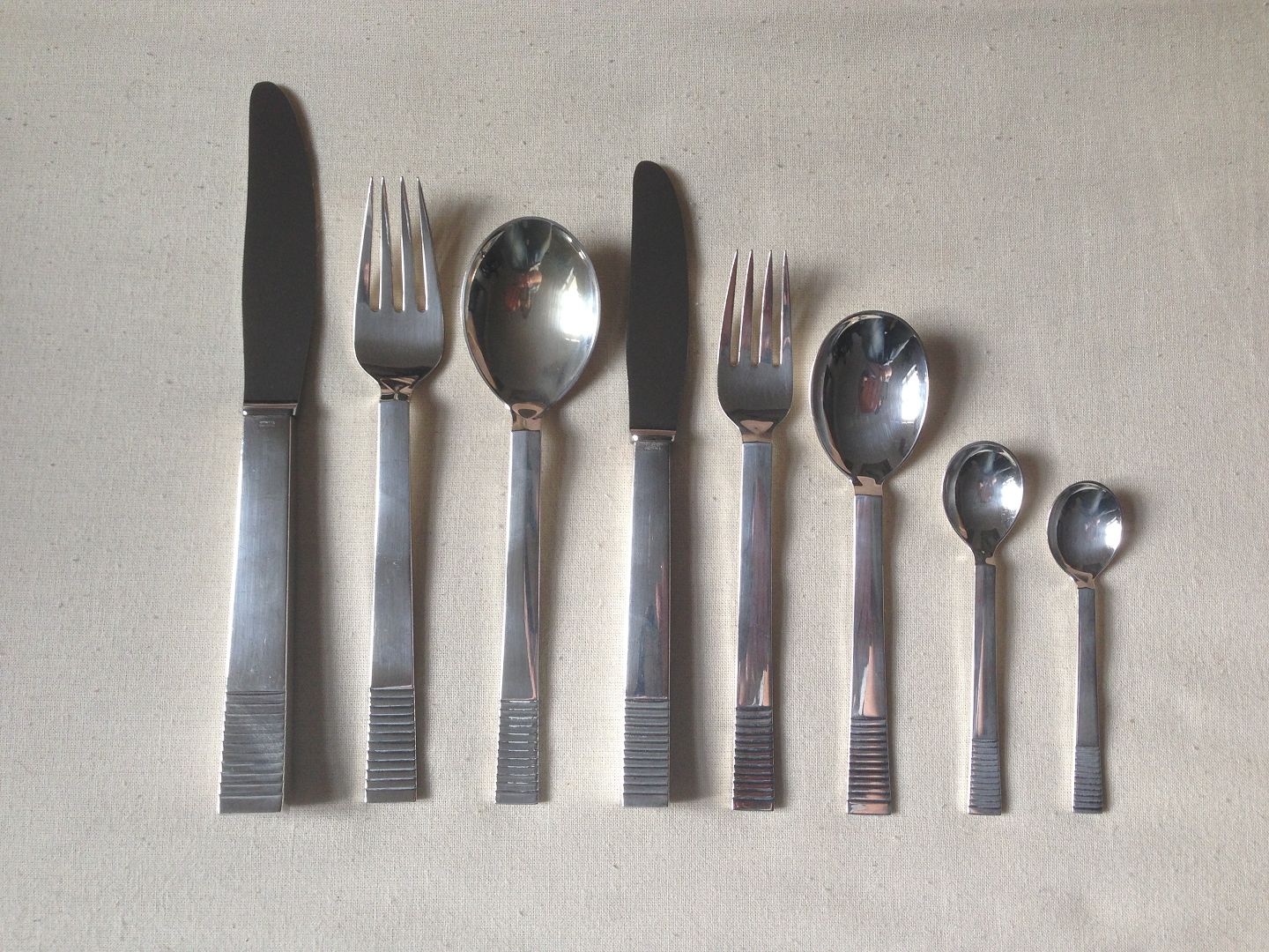 Georg Jensen Parallel/Relief Sterling Silver Flatware Set 48 Pieces. As in new condition.