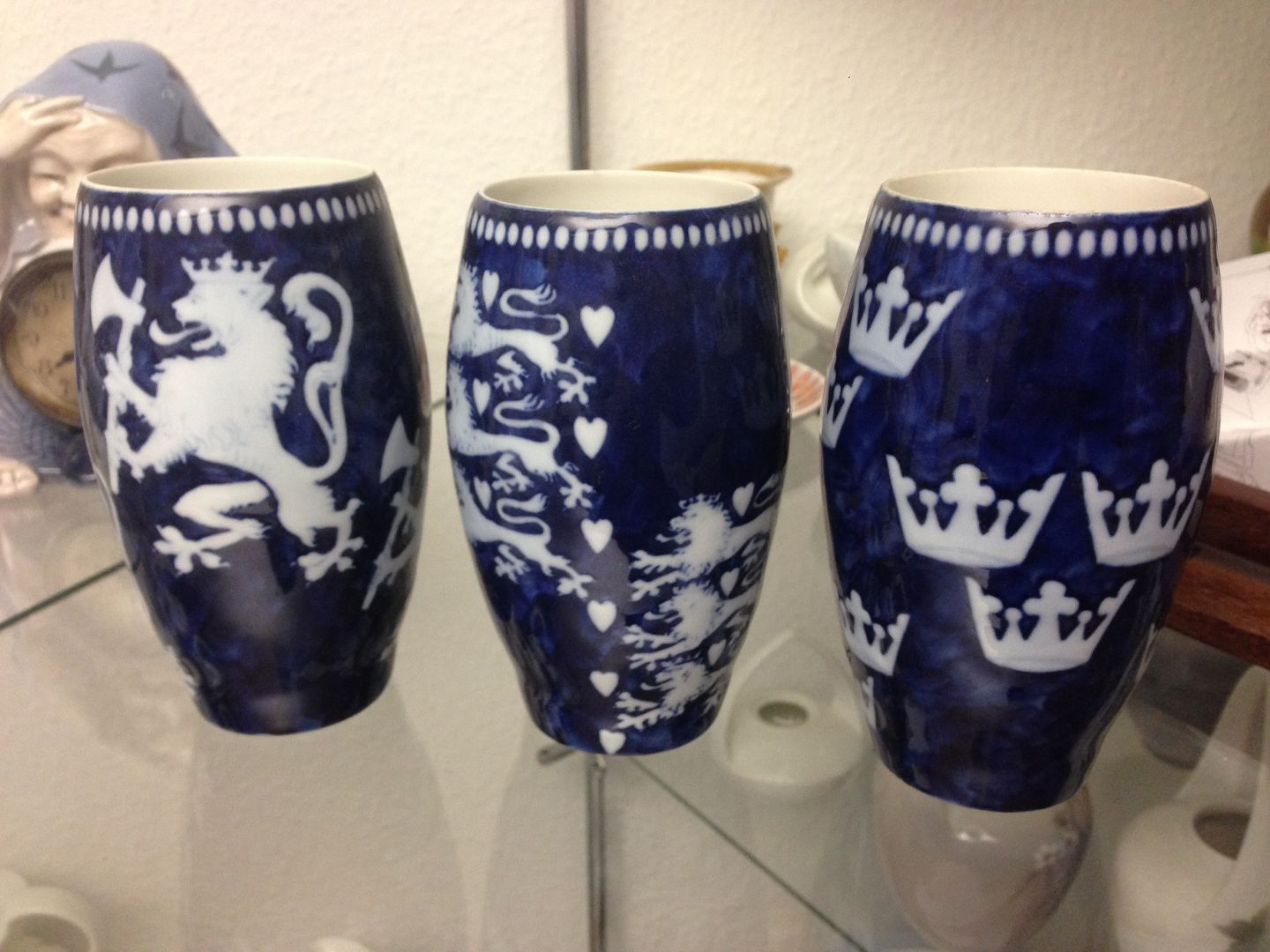 Bing & Grondahl Art Nouveau King Cups Sweden, Norway and Denmark. Measures 13,3cm and is from before 1900.