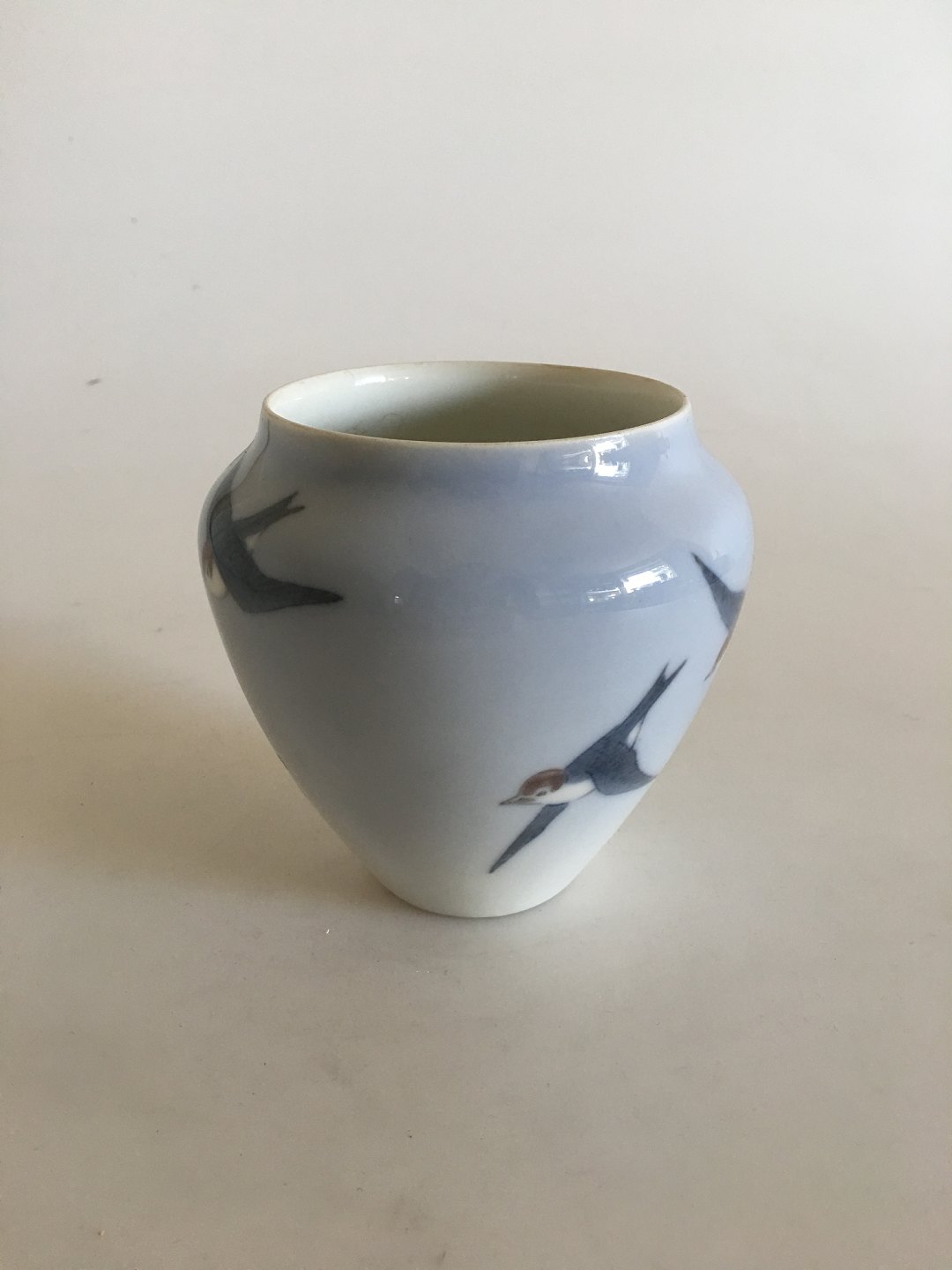 Tidlig Bing and Grøndahl Unika vase med Svaler af Effie Hegermann-Lindencrone. Måler 10cm høj og er i perfekt stand.