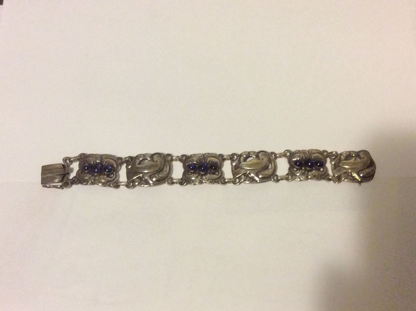 Georg jensen Sterling Silver Bracelet No 14 fra 1933-1944 med lilla sten. Måler 19cm og er i god stand.