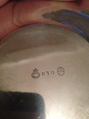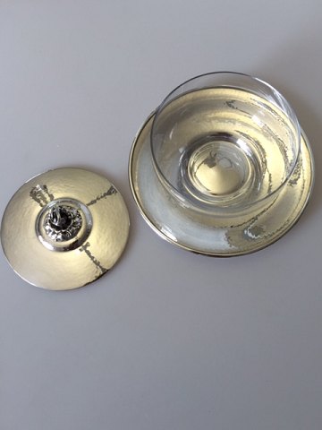 Georg Jensen Sterling Sølv og Glas Kaviar Skål med låg og underfad No 610. Fad måler 15,8cm, låg 11cm og 10,5cm høj.