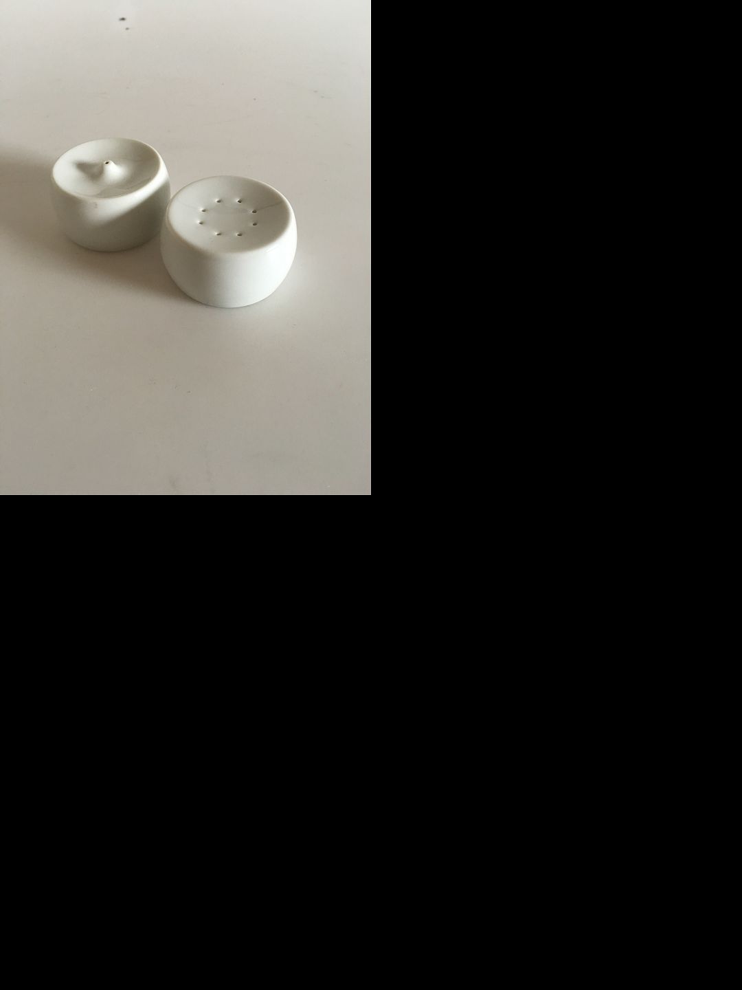 Bing and Grondahl White Henning Koppel Salt and Pepper Shakers No. 532 and No. 542. Measures 5.5 cm / 2 11/64 in.