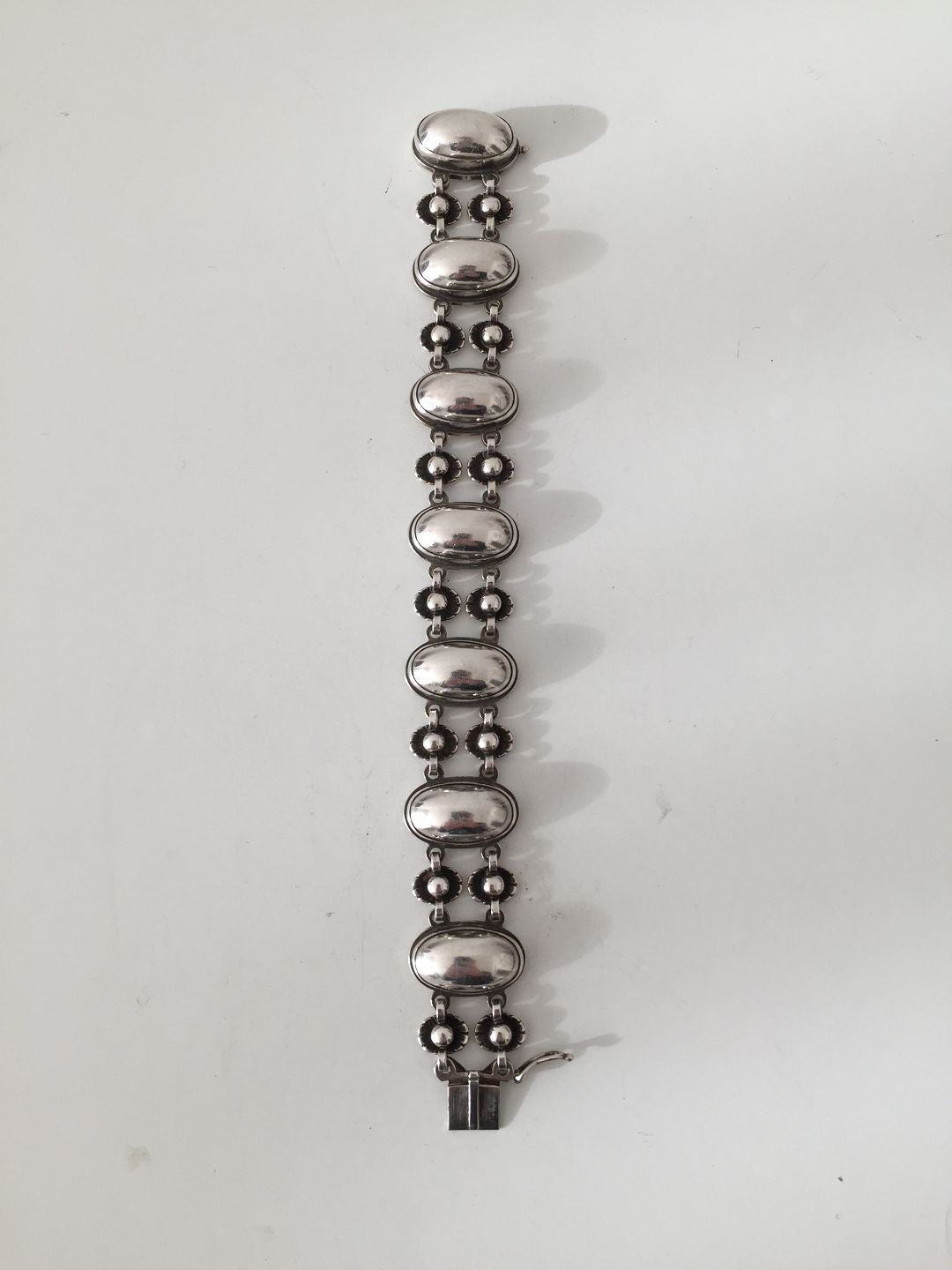 Georg Jensen Sterling Sølv Armbånd 63A. Designet af Henry Pilstrup. Måler 18,5cm / 7 1/4". Og link 2,1cm / 7/8". Stempler efter 1945. Vejer 45g