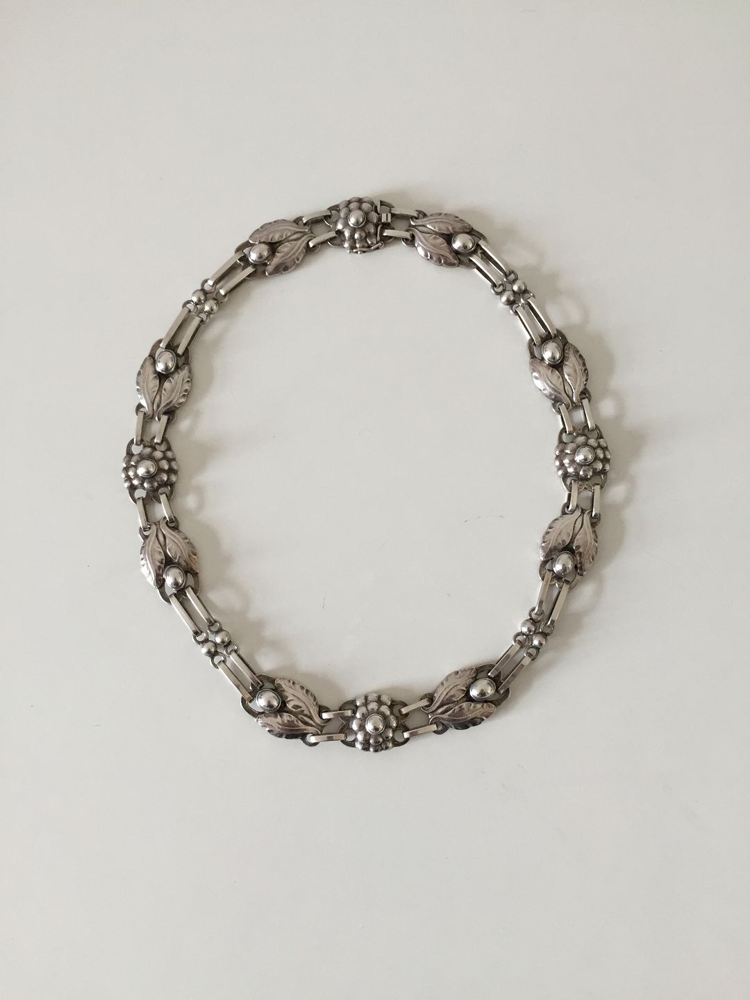 Georg Jensen Sterling Sølv Halskæde No 1. Måler 43,1cm / 17". Med gamle stempler. Vi har en ligende halskæde med en anden slags løs. Samt vi har også armbånd og øreringe der matcher. Vejer 53g