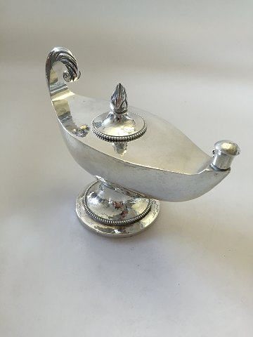 Mogens Ballin Stor Olielampe i Sølv. Måler 19cm x 14cm ( 7 1/2" x 5 1/2". Vejer 351 gram / 12,4 oz. Har indskription i bunden, men det kan fjernes før levering.