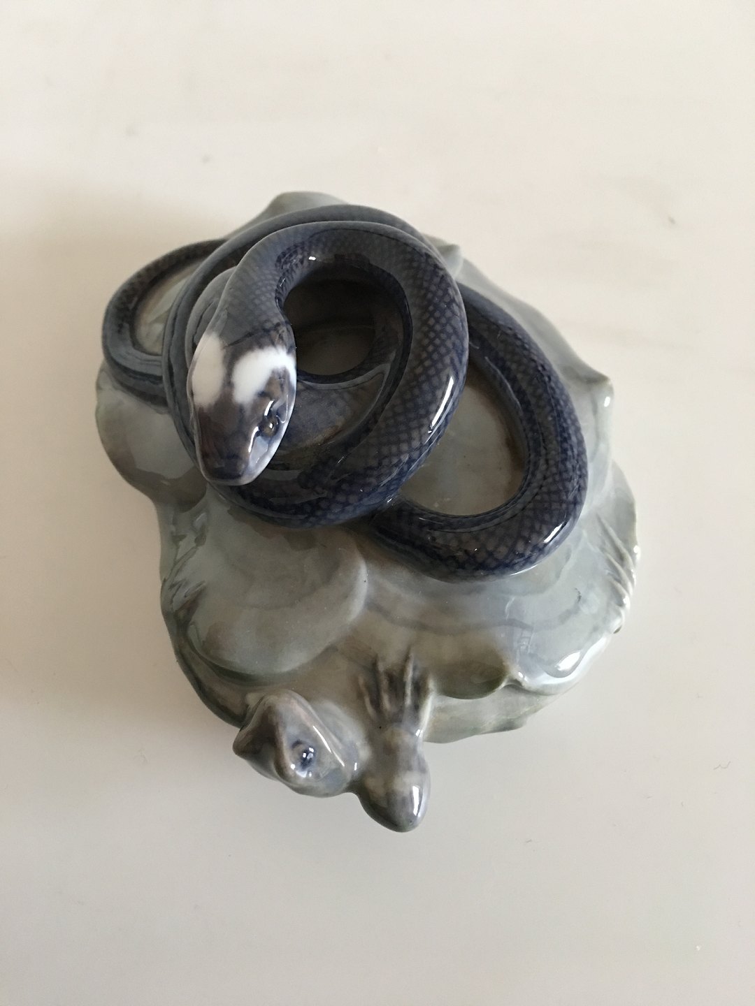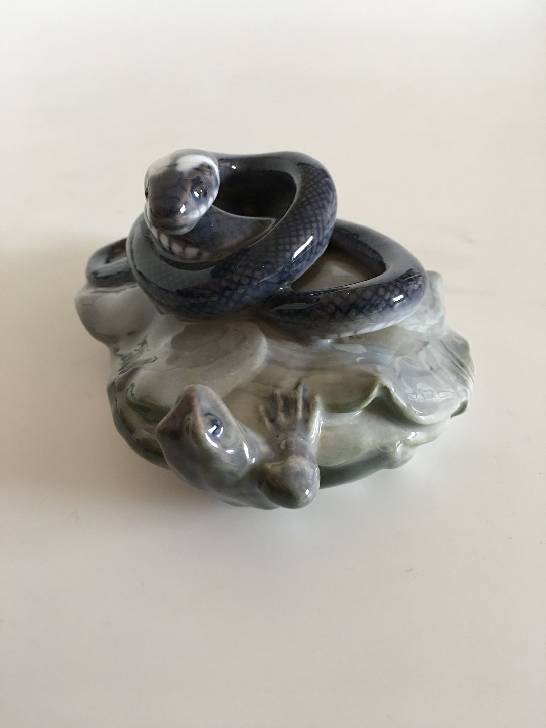 Royal Copenhagen Art Nouveau Paperweight with Snake and Frog No 347. Measures 14cm / 5 1/2" and is in perfect condition. Marked as a 1st.