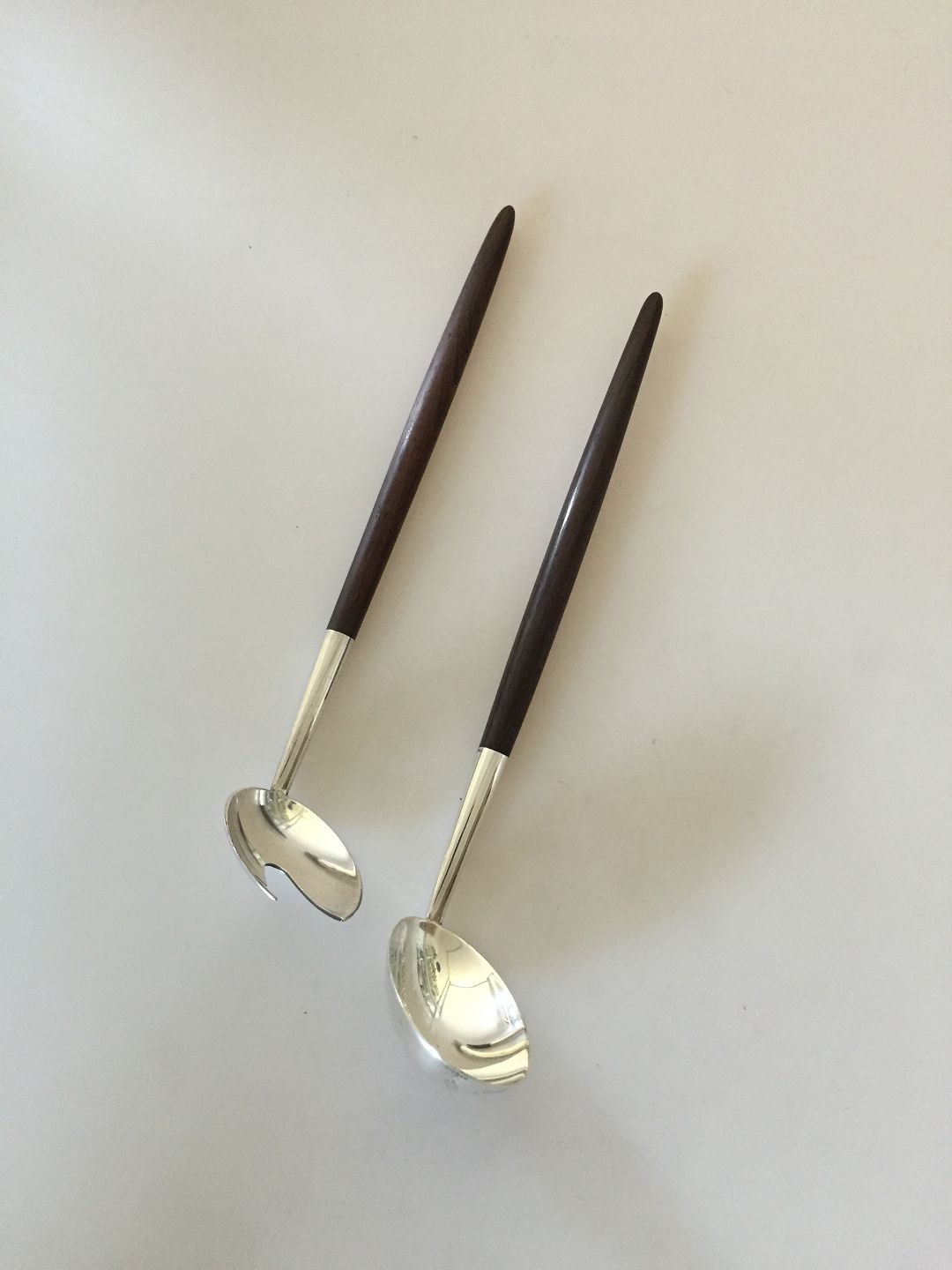F. Hingelberg Sterling Silver Salad Set with wood handles. Measures 23 cm (11 13/16")