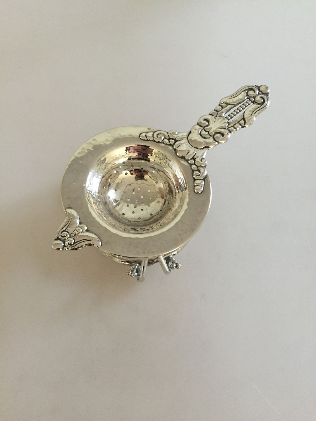 Beautifull Art Nouveau Teastrainer and teastrainholder in silver from DA Teastrainer. Measures 17 cm (6 11/16"). Height of holder is 4,5 cm (1 49/64") Combined weight is 124 g (4.35 oz).