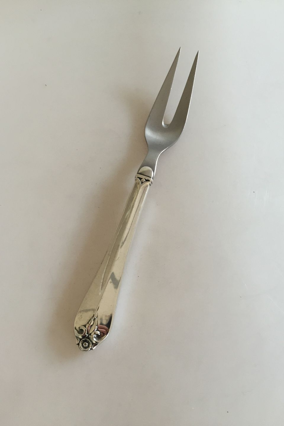 Kødgaffel med sølvskaft, mønster ligner Diana. Vejer 78 g. Måler 22.5 cm lang.