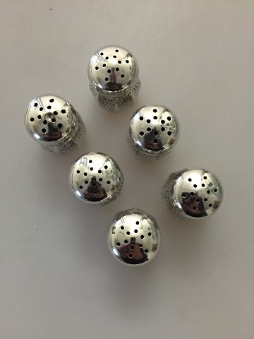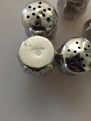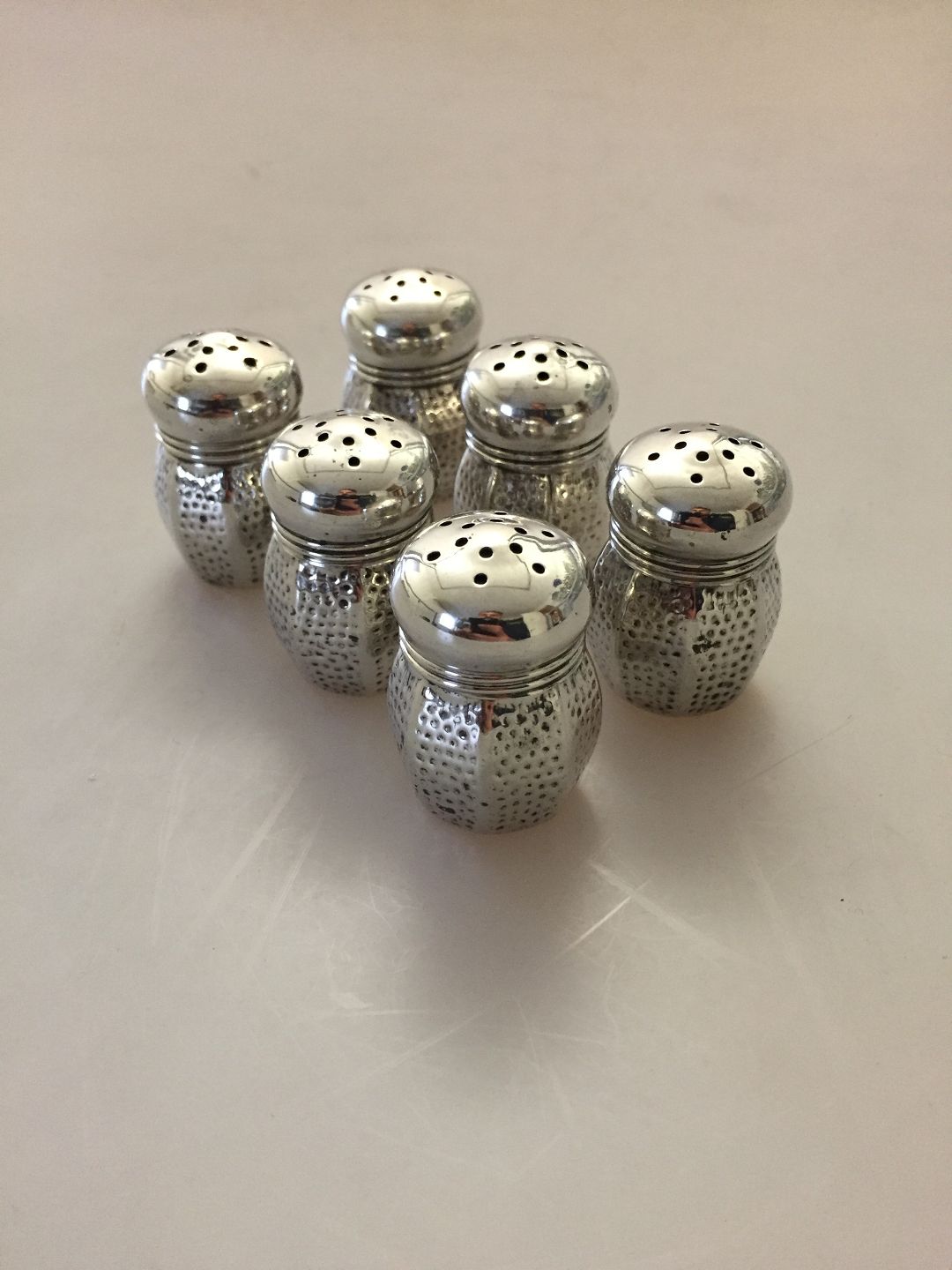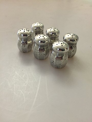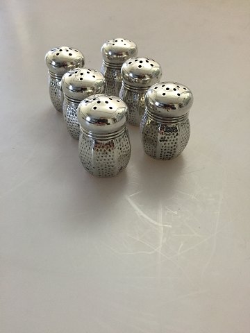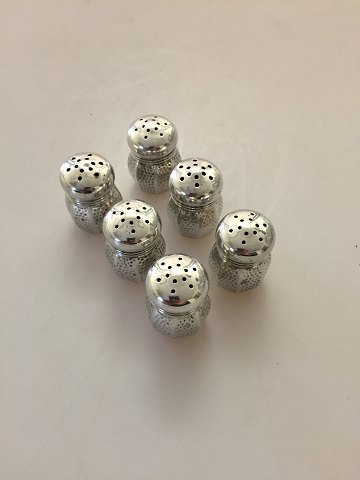 Sæt på 6 Salt/peberbøsser Amerikansk Sterling Sølv. Måler 3.5 cm i højden og 2 cm diameter.