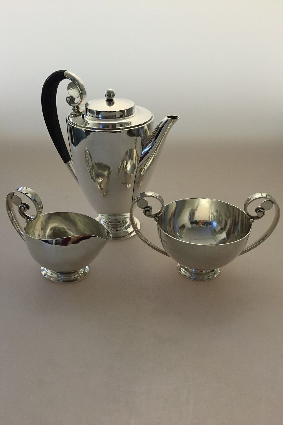 Georg Jensen Sterling Sølv Kaffesæt med Kaffekande No 321 og Flødekande og Sukkerskål No 321A designet af Johan Rohde.