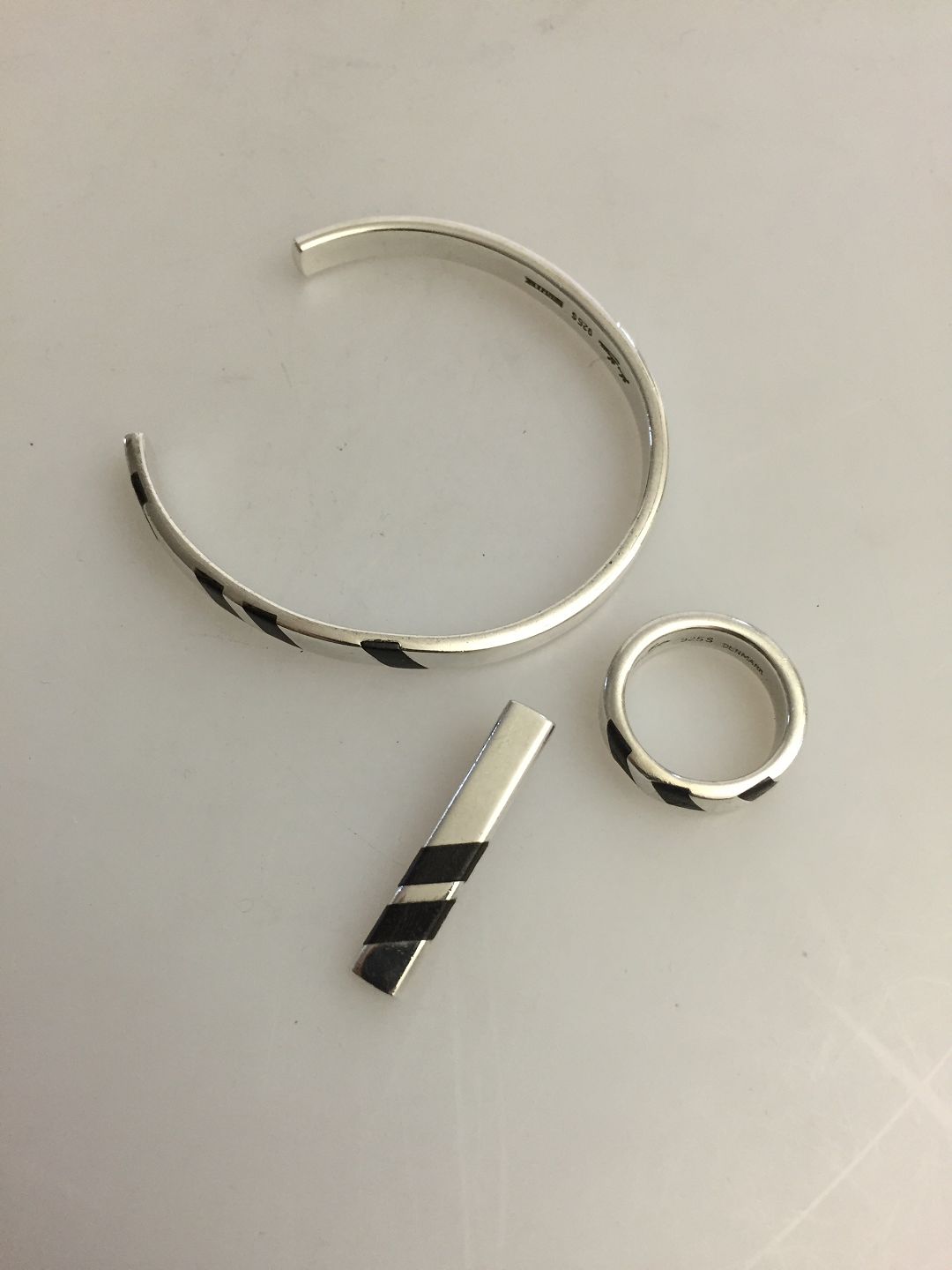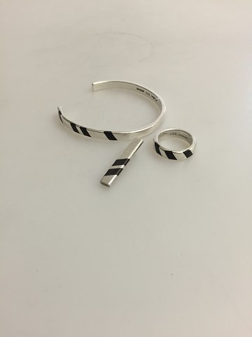 Hans Hansen Sterling Sølv Ring, Armring, og Vedhæng med Sort Emalje.