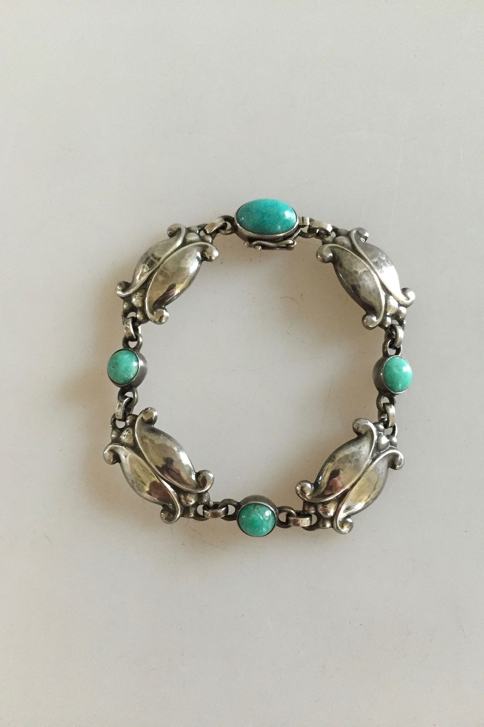 Georg Jensen Sterling Sølv Armbånd No 11 med Grønne Agater. Fra efter 1945.