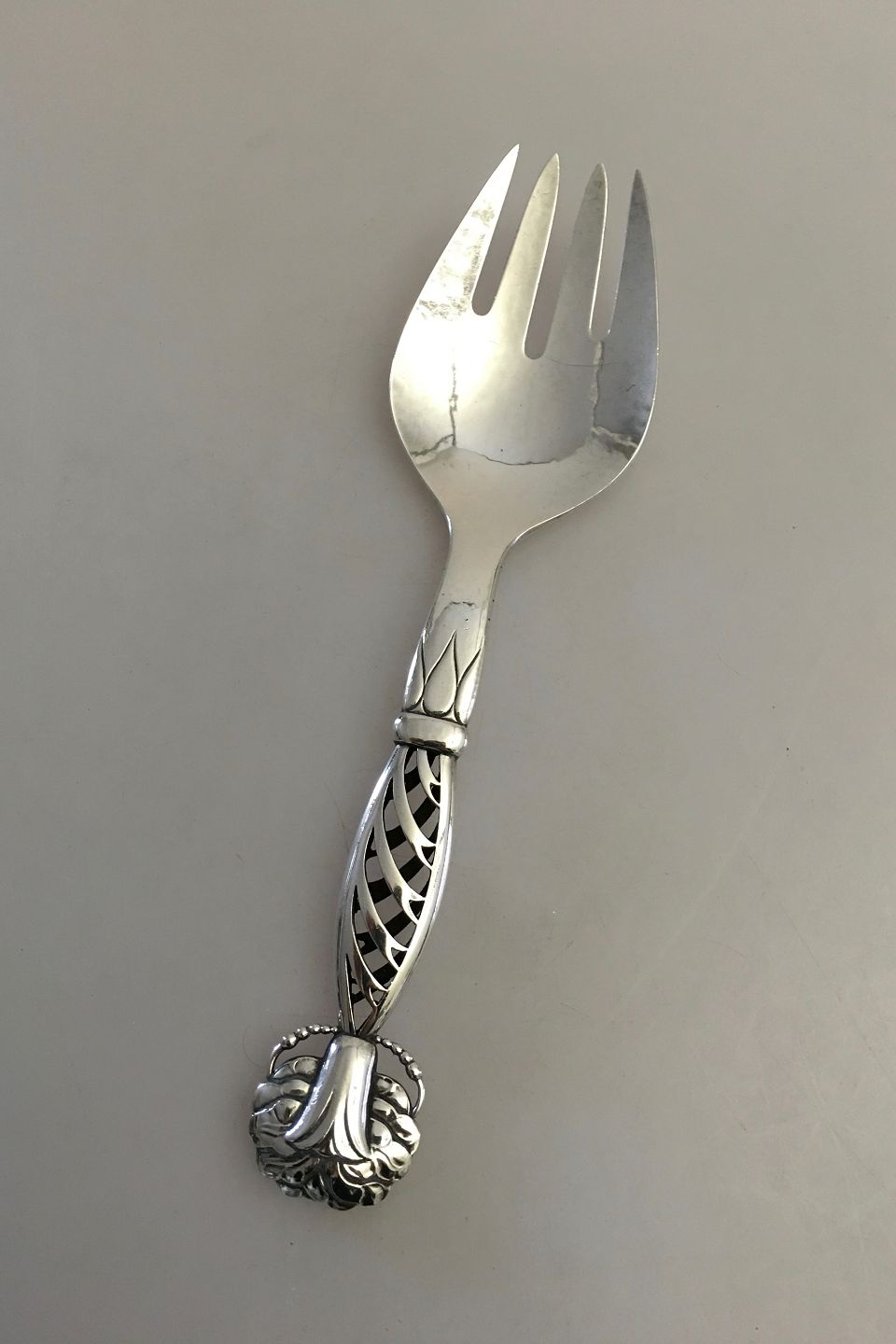 Georg Jensen Sølv Ornamental Serveringsgaffel No 83. Fra 1915-1930. 23.5 cm L.