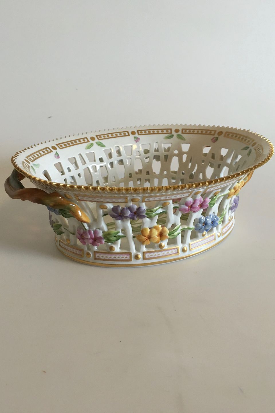 Flora Danica Pierced Oval Bowl with Handles No 20/3536. 24 x 19 x 8 cm (9 29/64" x 7 31/64" x 3 5/32").