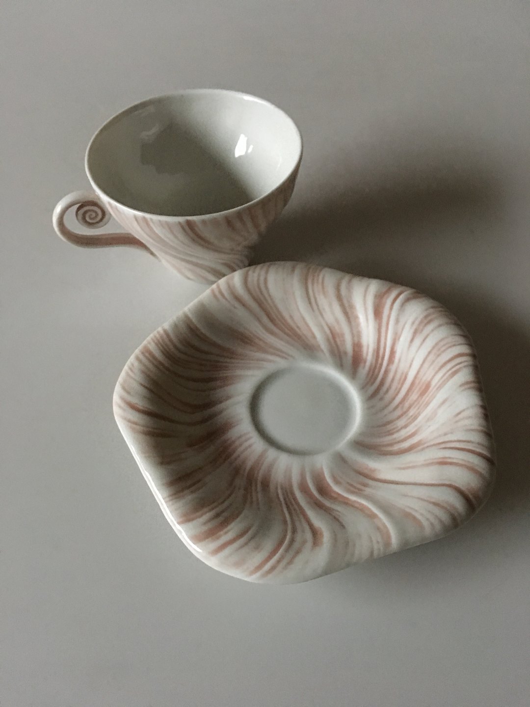 Royal Copenhagen Rosa Konkylie Mocca Kop og Underkop No 14179. 7.5 cm Ø. Design af Arje Griegst.