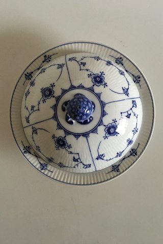 Royal Copenhagen Musselmalet Riflet Ragoutfad, Rund No 275. 21 cm. Låget har nogle krakeleringer i glasuren, men ellers er fadet uden skår.
