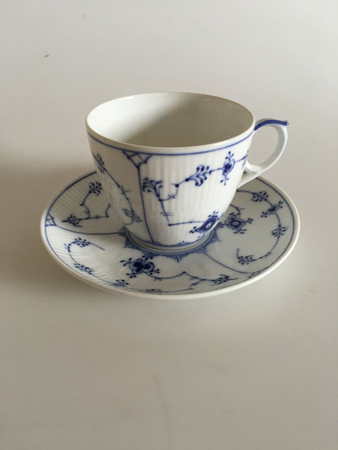 Royal Copenhagen Musselmalet Riflet Stor Kaffekop og Underkop No 78. 9.4 x 8 cm.
