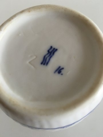 Royal Copenhagen Musselmalet Riflet Strøbøsse med Låg. 8 cm høj.