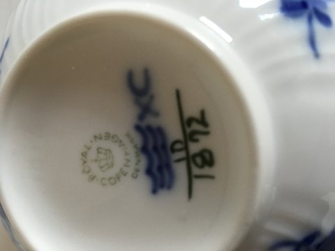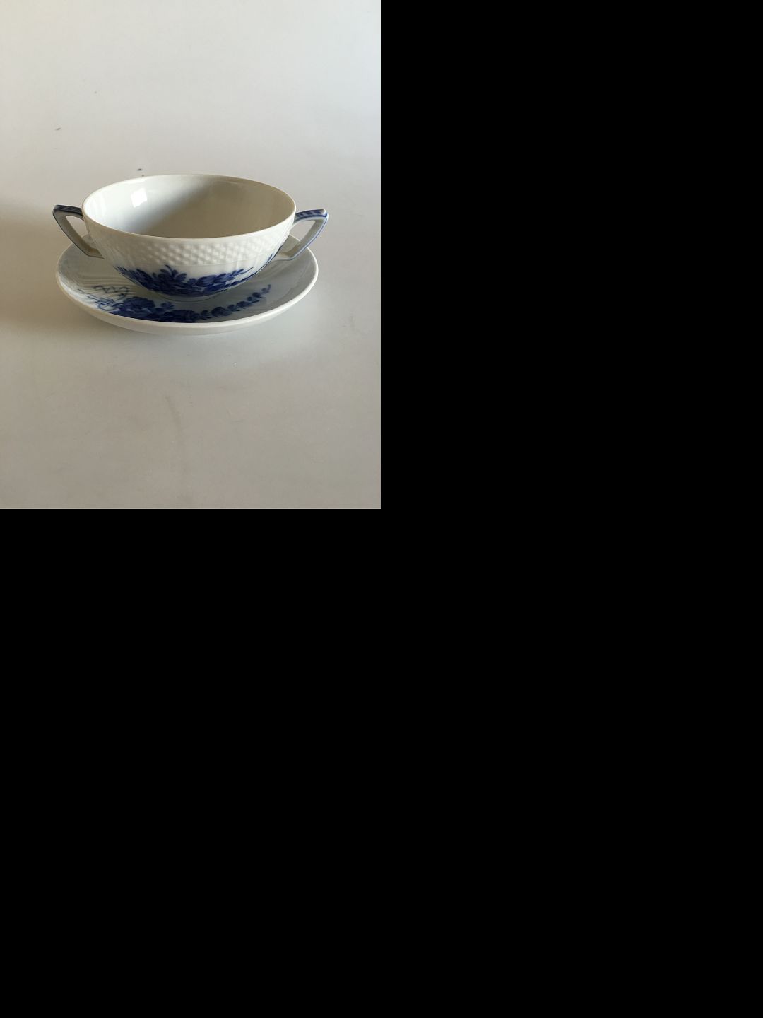 Royal Copenhagen Blå Blomst Svejfet Bouillonskål og Underkop No 1872. 16 x 6 cm