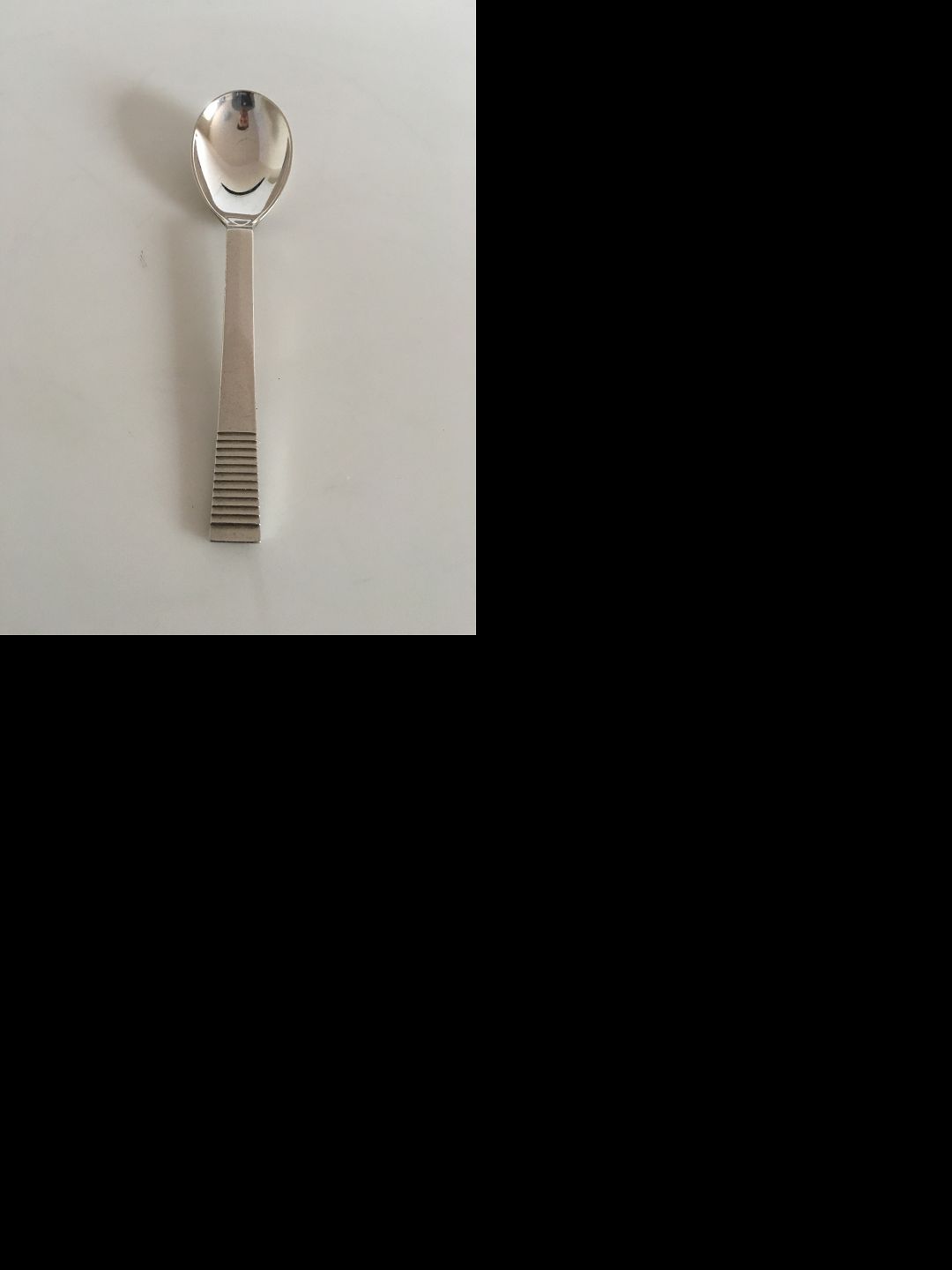 Georg Jensen Sterling Sølv Relief Barneske / Stor Te Ske No 031. Måler 14.5 cm. Design: Oscar Gundelach-Petersen 1931