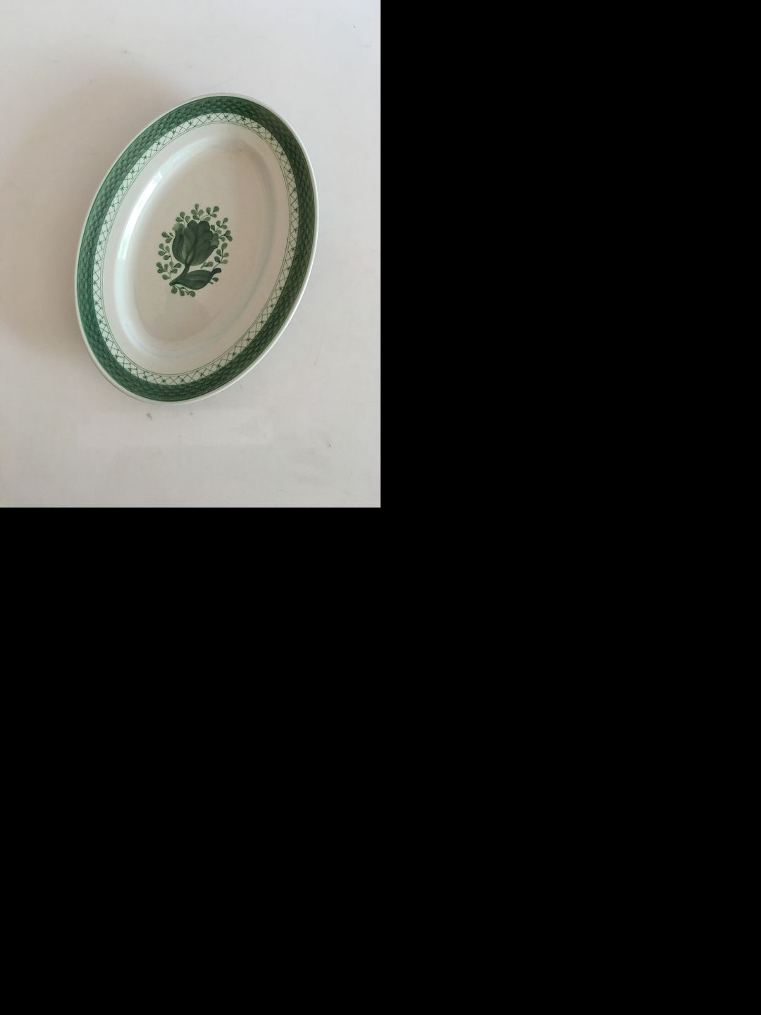 Royal Copenhagen Grøn Tranquebar Ovalt Serveringsfad No.927. Måler 27 cm / 10 5/8 in.