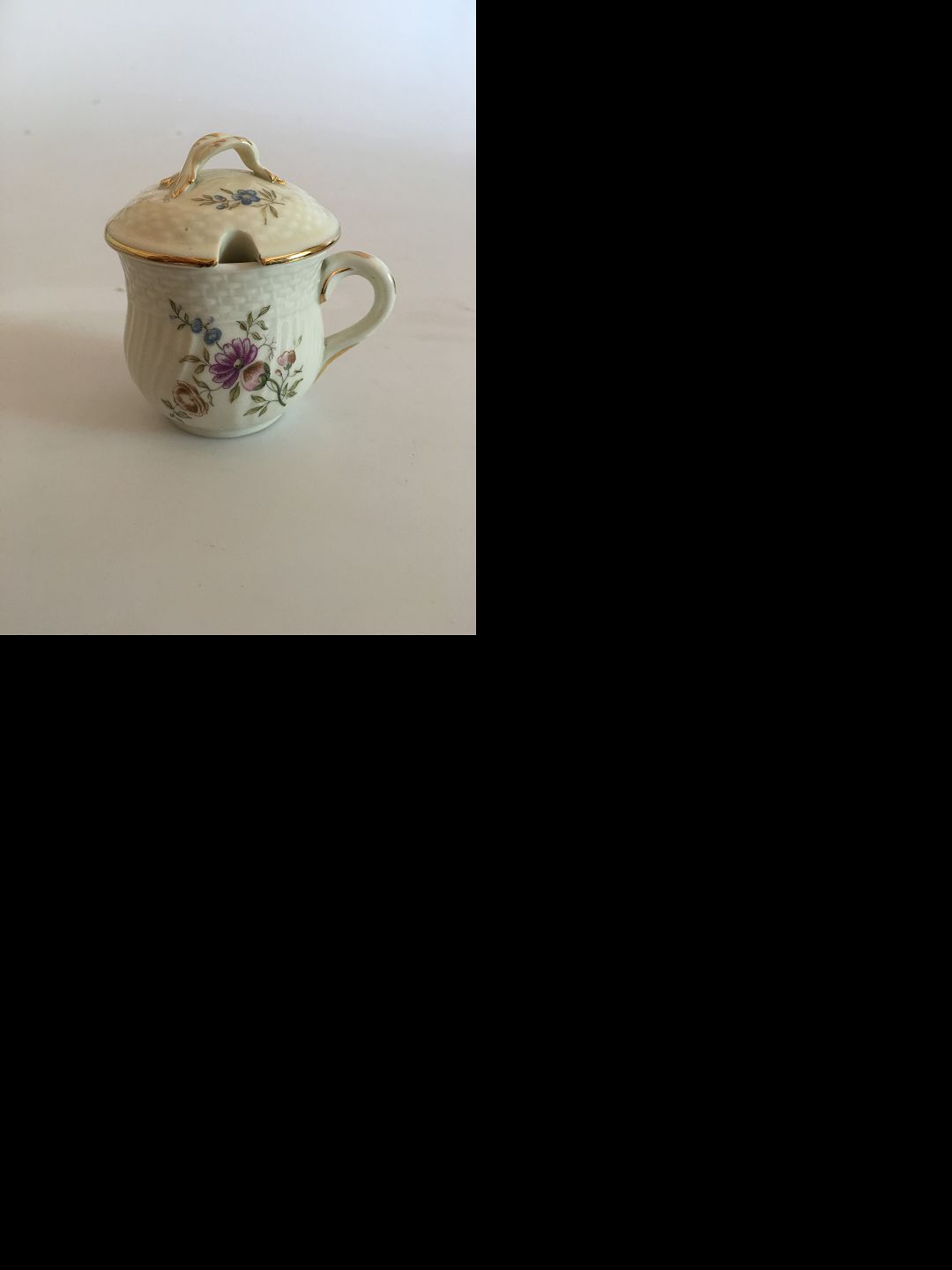 Royal Copenhagen Frijsenborg Sennepskop med Låg No 1594. 5.5 x 5.5 cm. Cremefarvet stel med blomstermotiver opkaldt efter godset Frijsenborg.