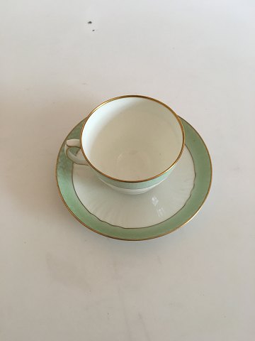 Royal Copenhagen Green Curved with Gold Coffee Cup and Saucer No 1870. The Cup measures 6.5 x 8 cm (2 9/16" x 3 5/32")